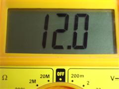 Pero si ahora medimos en otro punto del circuito con una tensión de 12 voltios, en la pantalla nos aparecerá un mensaje de error, que puede ser como en este caso un uno seguido de punto, o en otros casos OL (OverLoad) que nos indica que la medida sobrepasa el máximo del rango de medida seleccionado .