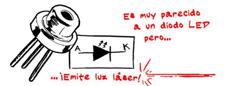 Muy similar en su concepto al diodo LED, pero bajo determinadas condiciones emite luz láser que debidamente orientada da lugar a un haz de luz láser.