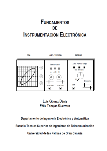Añado el libro de distribución gratuita Fundamentos de la Instrumentación Electrónica a nuestra Biblioteca, en el que sus autores, Luis Gómez Déniz y Félix Tobajas Guerrero del Departamento de Ingeniería Electrónica y Automática de la Escuela Técnica Superior de Ingenieros de Telecomunicación de la Universidad de las Palmas de Gran Canaria, han reunido en un sólo texto todos aquellos aspectos que se consideran fundamentales para el seguimiento de la asignatura Ampliación de Electrónica, dedicada al estudio del funcionamiento de los equipos electrónicos básicos. Estos equipos son: