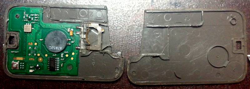 Solución: Se ha desoldado la bobina de desbloqueo de la placa electrónica de la tarjeta. Resoldar. Muy común en las tarjetas del Megane II.