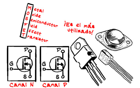 Es una variante del transistor de JFET que lo mejora para ciertas aplicaciones y facilita el proceso de fabricación implementado en circuitos integrados de gran densidad. Funciona de un modo similar, permitiendo el paso, o no paso, de corriente entre sus terminales Source (Fuente) y Drain (Drenador) mediante la aplicación de voltaje en su terminal Gate (Puerta). Su nombre proviene del acrónimo inglés Metal Oxide Semiconductor Field Effect Transistor. La corriente de puerta (Gate) requerida para cambiar su estado de funcionamiento es aún menor que en los transistores JFET ya tiene este terminal aislado del canal de conducción, por lo que a veces se les denomina IGFET (Insulated-Gate FET, FET de puerta aislada)